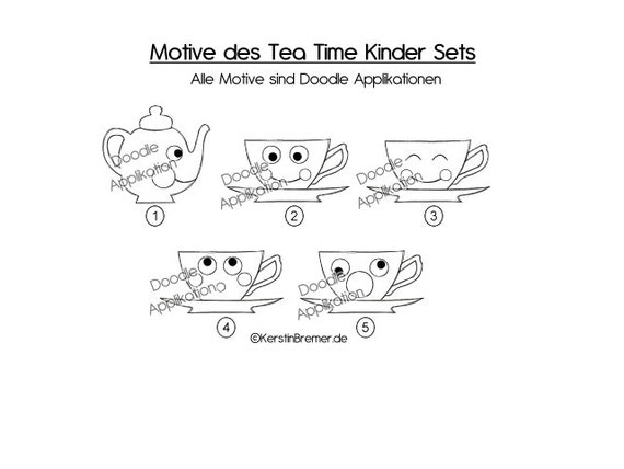 Embroidery Files Set Mug Teatime Kids 10x10 Doodle Application Etsy