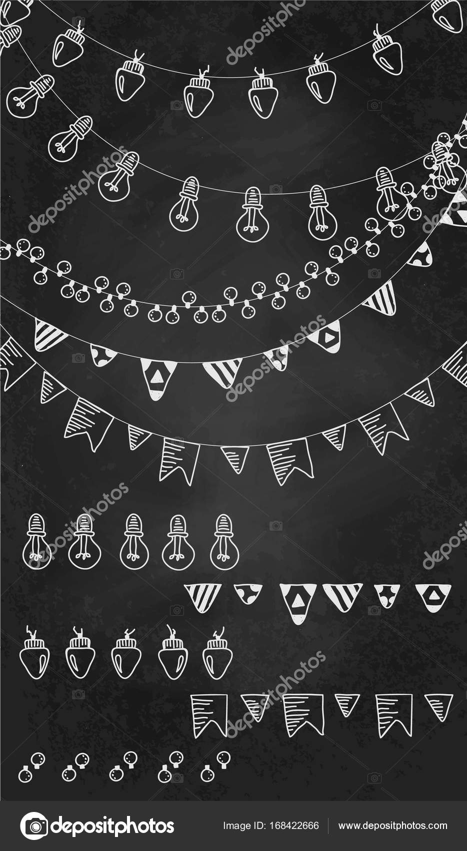 Hand Drawn Borders Garland Brushes On Chalk Board Stock Photo