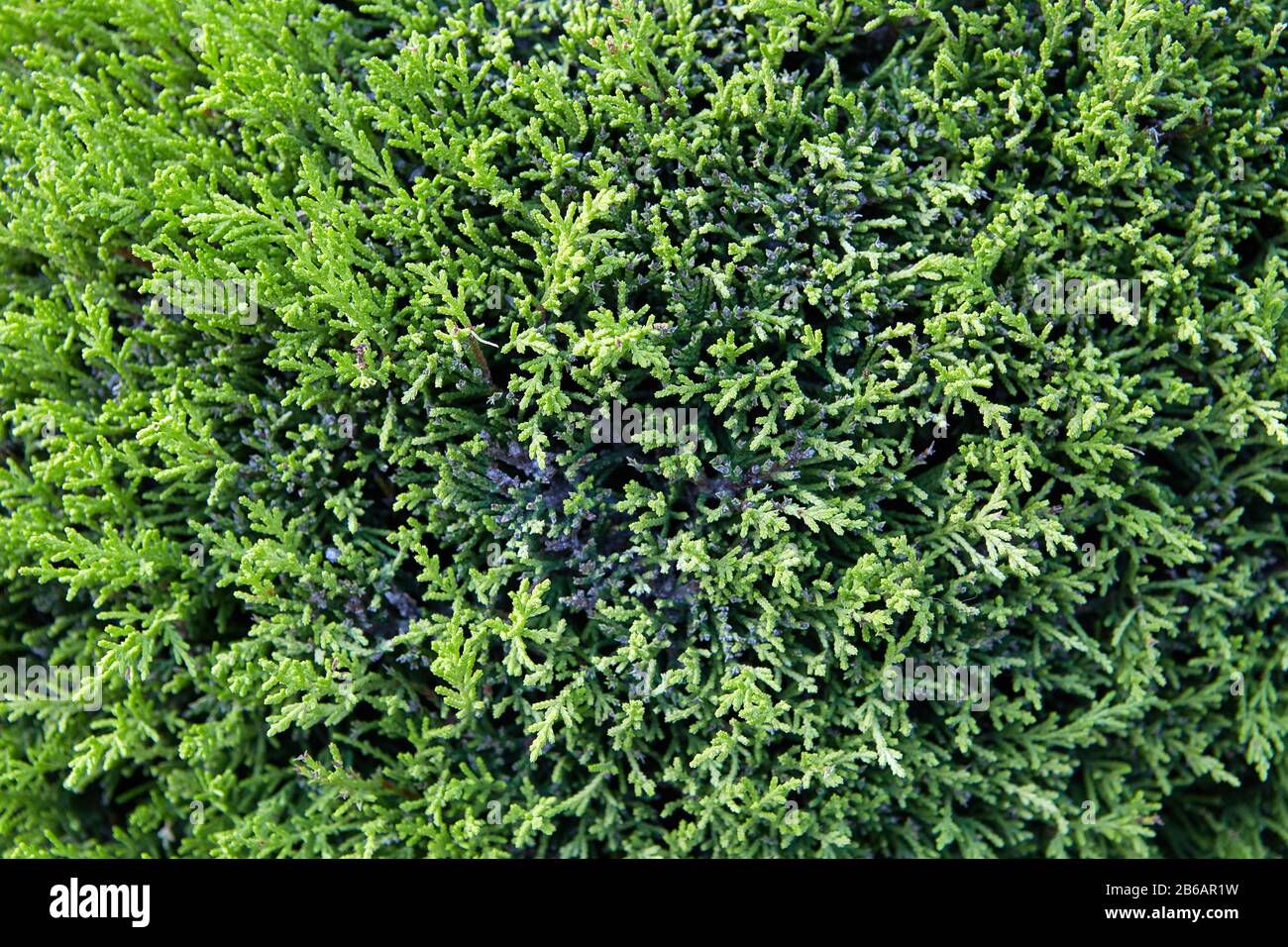 Texture Of Green Coniferous Ornamental Shrub Abstract Background